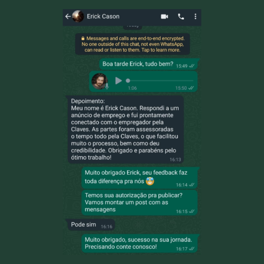 A equipe da Claves te acompanha de pertinho em todas as etapas para garantir assertividade no recrutamento.